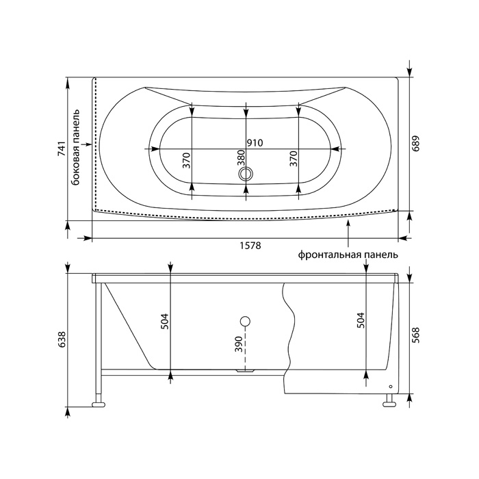 Высота ванны с опорой, см