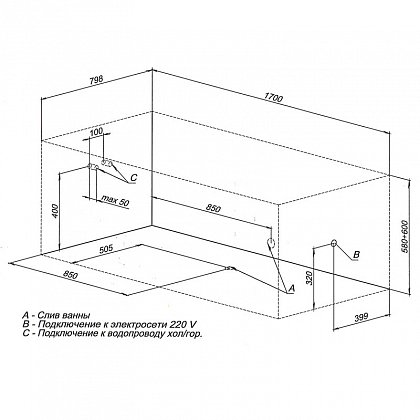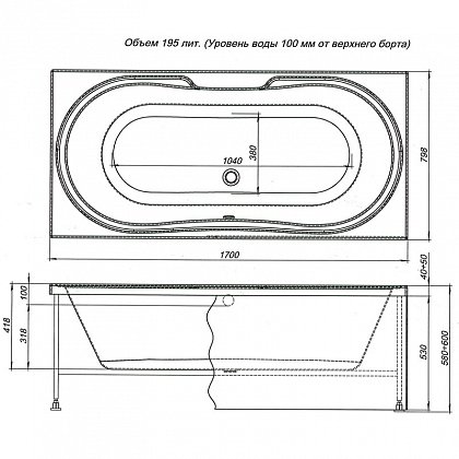 Высота ванны с опорой, см