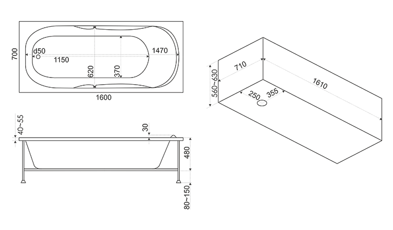 Высота ванны с опорой, см