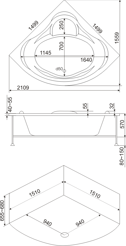 Высота ванны с опорой, см
