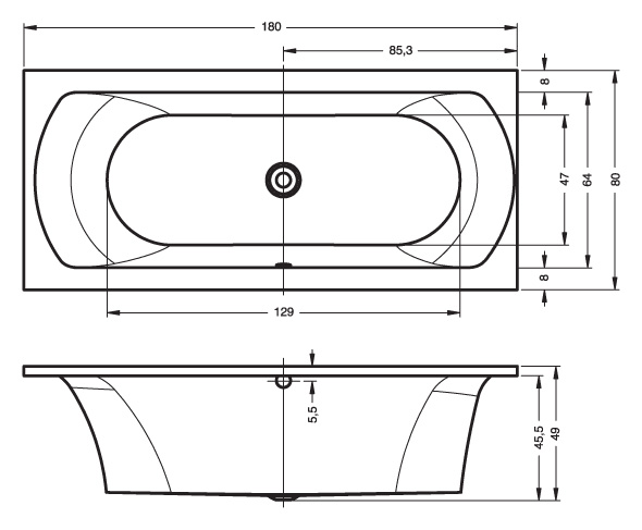 Высота ванны с опорой, см