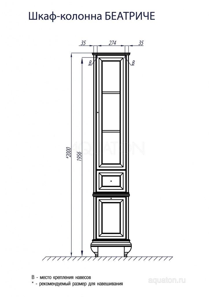Особенности шкафа-колонны Акватон - БЕАТРИЧЕ слоновая кость патина 1A187403BEM6R правый: