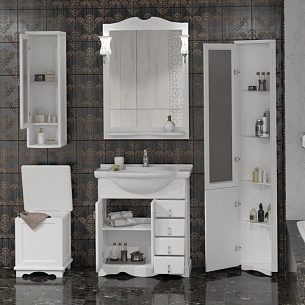 Коллекцию мебели для ванной комнаты Клио дополняют различные элементы для удобства организации пространства в ванной комнате: подвесной шкафчик одностворчатый, подвесной шкафчик двустворчатый, угловой подвесной шкафчик, напольная тумбочка, напольный пенал (две версии, левый и правый), напольны