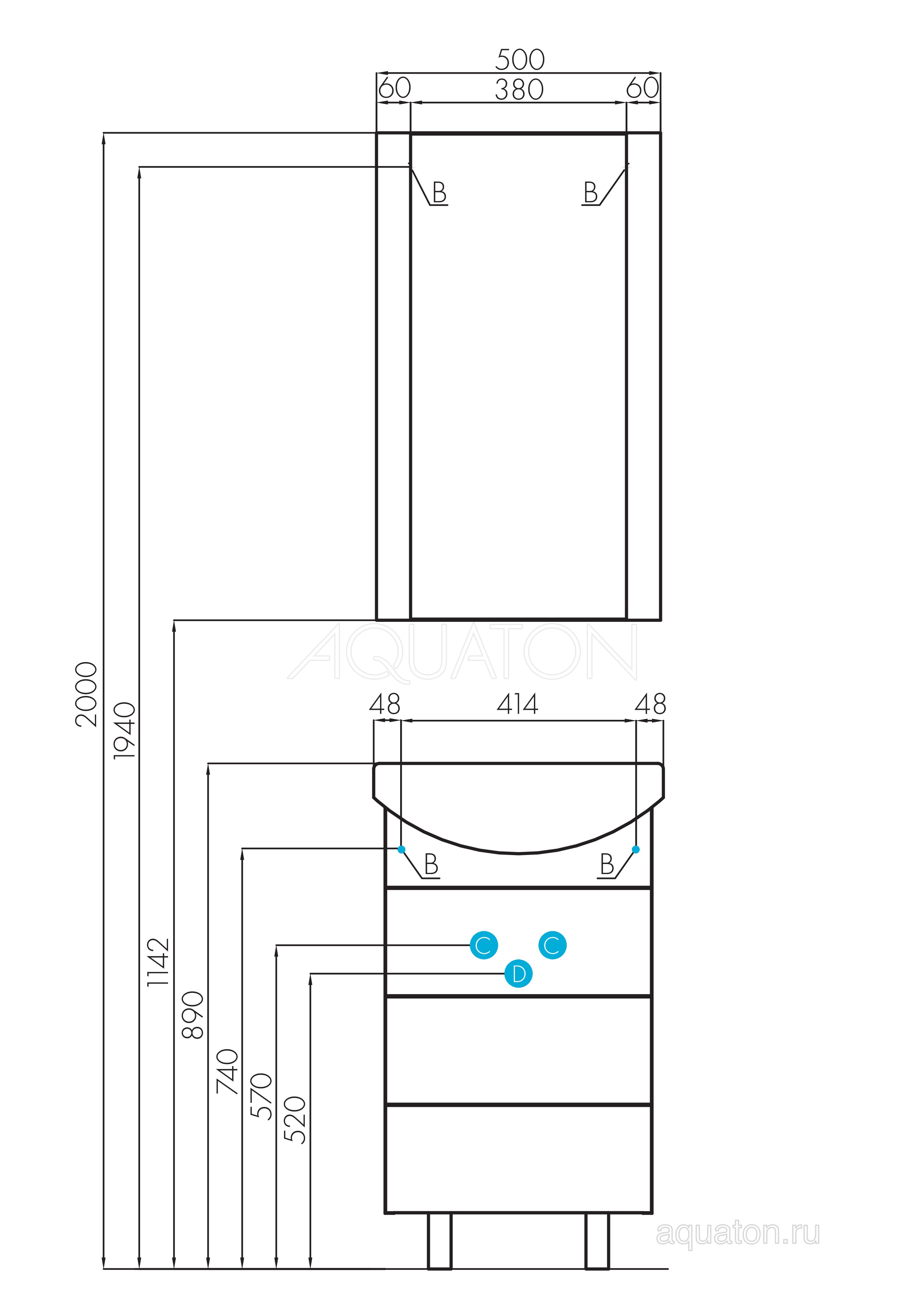 Тумба с раковиной Акватон АРИЯ 50 Н чёрная