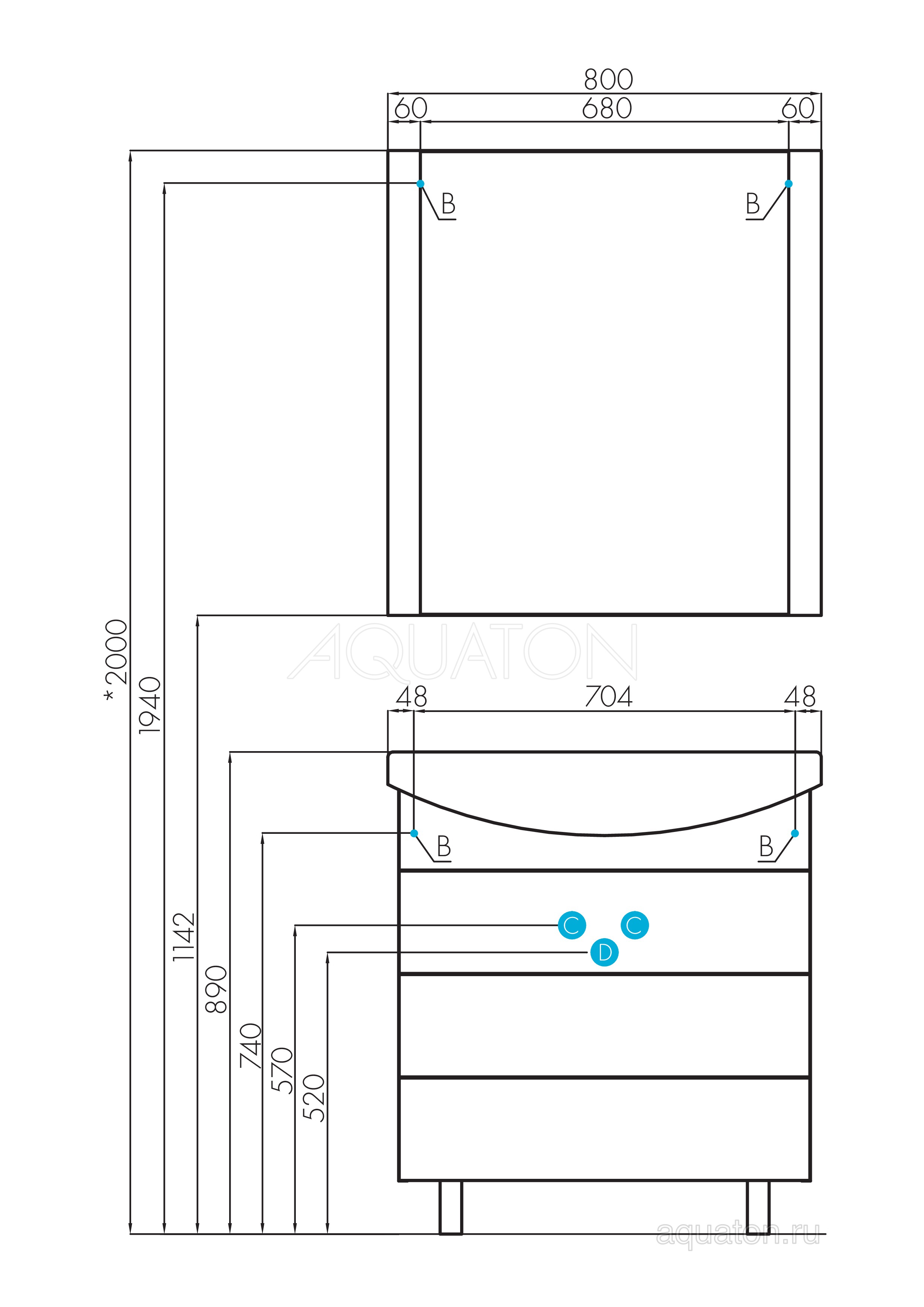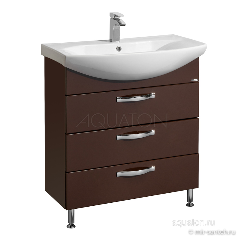 Тумба под умывальник Акватон - АРИЯ 80 Н тёмно-коричневый 1A141301AA430 устанавливается на пол при помощи регулируемых по высоте ножек.