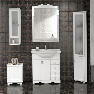 Коллекцию мебели для ванной комнаты Клио дополняют различные элементы для удобства организации пространства в ванной комнате: подвесной шкафчик одностворчатый, подвесной шкафчик двустворчатый, угловой подвесной шкафчик, напольная тумбочка, напольный пенал (две версии, левый и правый), напольны