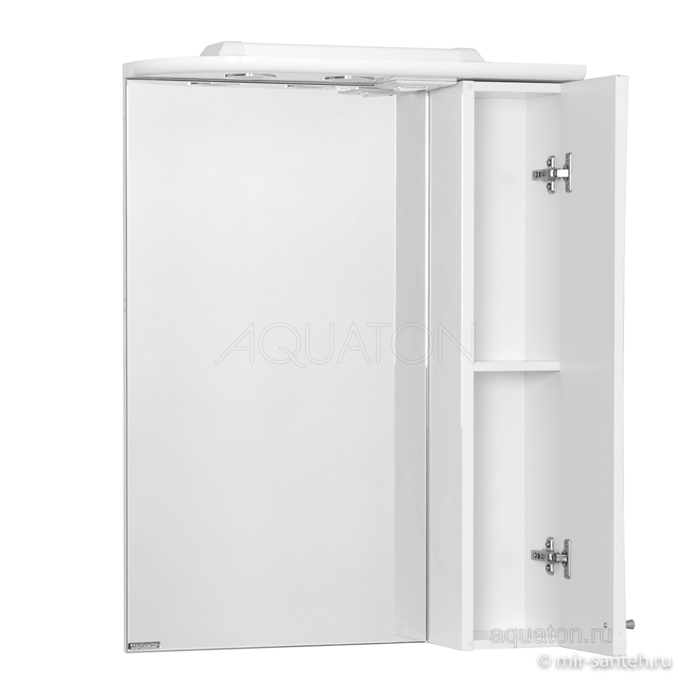 В зеркале Акватон - ДЖИММИ 57 правое 1A034002DJ01R имеется верхняя панель с подсветкой, а за фасадом установлена жесткая полка.