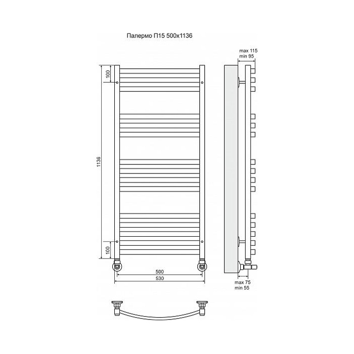 Полотенцесушитель Палермо – это оптимальное сочетание стильного дизайна и функциональности. Конструкция состоит из нескольких перекладин (8-15 шт.), сгруппированных по 3-5 штук. Отличительной особенностью является изгиб ребер, который делает модель максимально удобной в использовании.