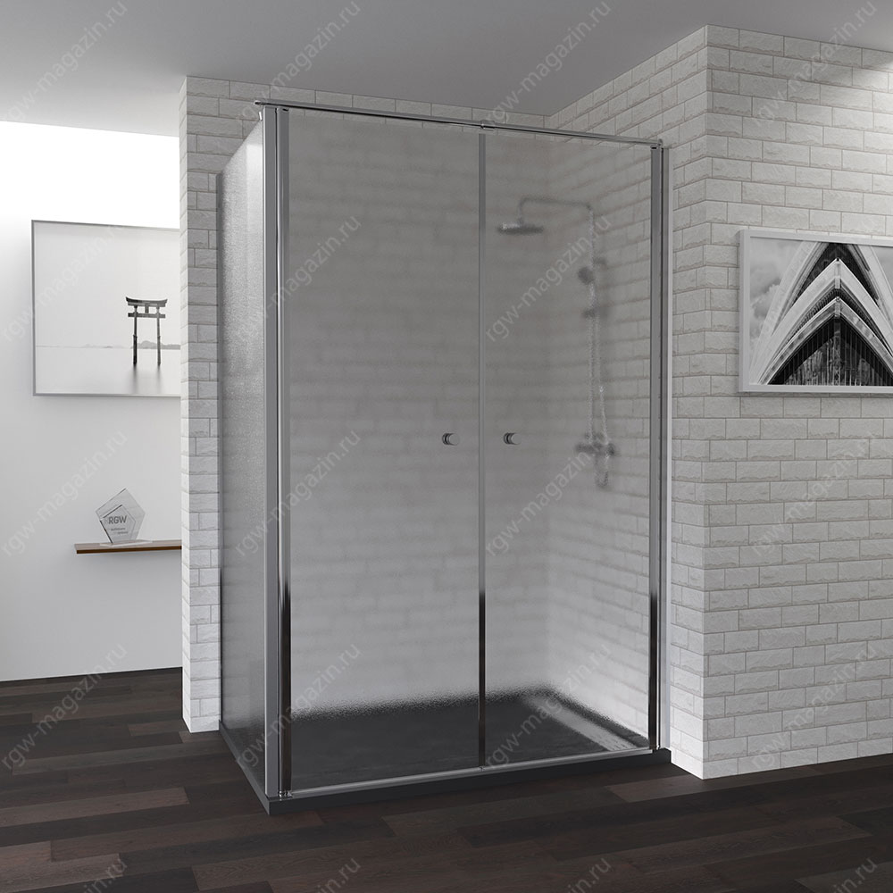 Распашная дверь двухстворчатая на маятниковых петлях Закаленное безопасное стекло 6 мм. Стекло: Прозрачное. Покрытие стекла Easy Clean. Регулировка модели - 40 + 10 мм. Профиль: Хром. Устанавливается одна или две боковые панели RGW Z-12, образуя Г-образный или П-образный уголок. В комплекте верхний держатель и пристенный профиль в отдельных упаковках. Душевой поддон или барьер приобретается отдельно.