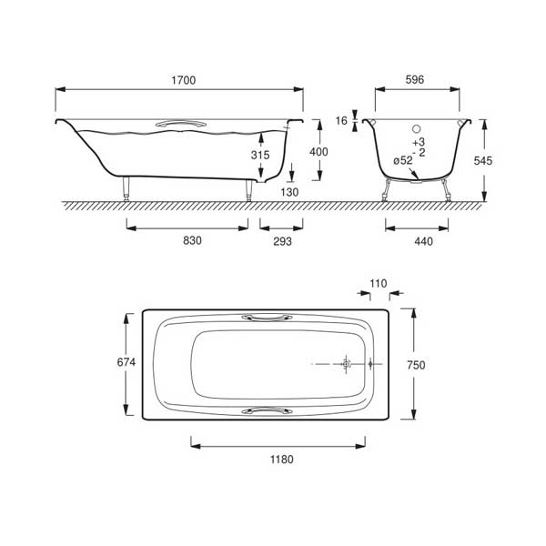 Чугунная ванна Jacob Delafon Diapason 170х75 с ручками.